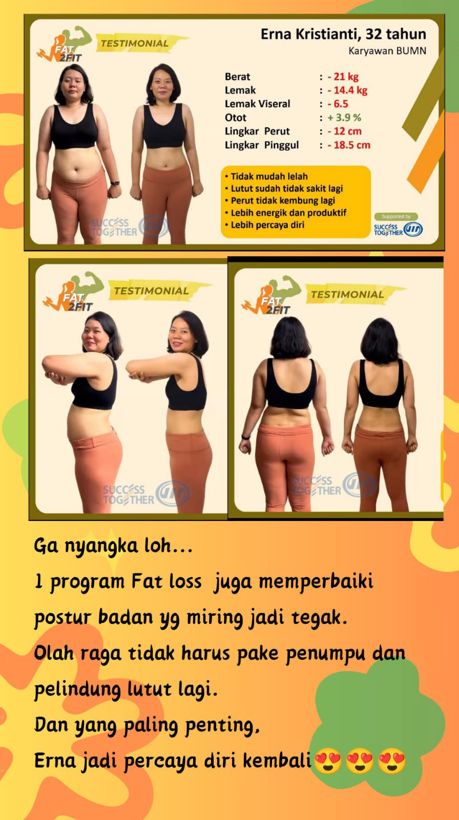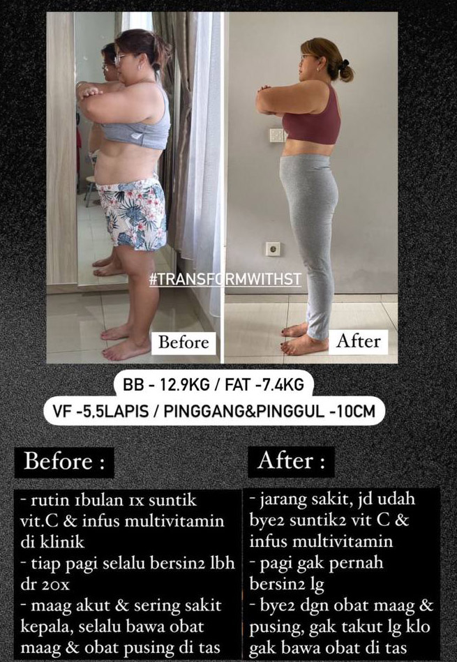 Dengan menjalani program fat loss bersama #transformWithST, para dieters sekaligus mendapatkan wajah yang glowing dan body yang shaped. Hal ini dikarenakan fokusnya untuk menaikkan massa otot dan mengurangi lemak.